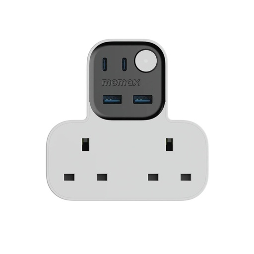 Momax 1-Charge Work Flow T-shaped Extention 2 Socket with USB (White)